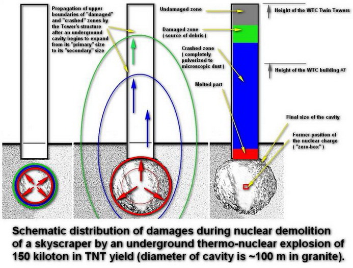 Takođe je iz snimaka i iz izjava svedoka evdientno da se deset sekundi pre polčetka rušenja čitava zgrada blago zatresela, i to je bio trenutak detonacije nuklearne podzemne bombe u srcu Menhetna.