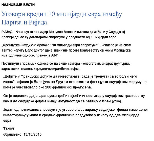 U tom smislu je zanimljivo da je krajem 2008. Francuski ministar finansija, Kristina Lagard (koja je kasnije otišla na čelnu poziciju MMF-a nakon skandaloznog smaknuća sa te funkcije Dominik Štros Kana) objavila francusku nameru da Paris treba da bude prestonica Islamskih finansija. Rekla je još i da će nekoliko islamskih banaka odnosno njihovih ekspozitura biti otvoreno u Parizu do kraja 2009. Francuski izvori su procenili da bi to otvorilo tržište vredno 500 do 600 milijardi dolara koje bi onda godišnje imalo rast od oko 11 posto u proseku. Podsetimo da je Sirija dominantno francuska interesna zona, zbog čega Britanija već decenijama tamo prikriveno ratuje sa njima. Sada (oktobra 2015-te) to čini preko Rusije. (Rusija inače kao ni SAD ne bi imala razloga da vodi bilo kakvu ekspanzionističku politiku, osim što je na to primorana pritiskom iz londonskih poslovnih krugova). Dakle, Alžir, Tunis, Maroko, Liban i Sirija su pod patronatom Francuske. Zašto bi se islamsko bankarstvo iz ovih zemalja kontrolisalo iz Londona, verovatno se zapitao neko od francuskih vlastelinskih porodica? Nije li logično da njihov finansijski centar bude u Parizu? Naravno, osim ako bi se u ovim zemljama zbog „nezadovoljstva“ građana promenio režim i došao neko ko je naklonjeniji Londonu? Džon Sendvik, jedan od direktora švajcarske uprave za aktivu firme “Encore Management”, okarakterisao je otvaranje nekoliko islamskih banaka u Evropi kao “trku za kontrolu bogate nagrade: koja danas vredi stotine milijardi, ali u budućnosti će to biti trilioni dolara islamskog bogatstva”. Dakle, da li je bitka za ovo novo finansijsko tržište pravi razlog “arapskog proleća” i sadašnjih ratnih obračuna u Siriji i Jemenu ? Jer ono se odvija uglavnom u frankofonskim državama. Izveštaji o žestokim obračunima tajnih službi u Siriji (koja je još zvanično pod patronatom Francuske ) nesumljivo pokazuju podmuklu igru Bašar Asada. Neko iz Francuske je međutim ipak dobio "utešnu nagradu" u vidu biznisa koji će moći da ostvari u britanskoj koloniji , Saudi Arabiji , i ubere kojih desetak milijardi evra. To je vest upravo objavljena (13.10.2015.), mada je u pitanju samo privatna tvrdnja francuskog premijera (španskog porekla). Čiji je on pijon, da li i njega vode britanski agenti, Francuzi će tek imati priliku da saznaju. (Baba Vanga kaže bi rekla da je i on njihov).