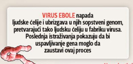 Poslednja globalistička medijska predstava koja ima za cilj da pospeši biznis privatnih farmaceutskih kompanija (ili da prikrije jedan podli vojni eksperiment), a kod običnih građana izazove strah, još jedno je "epidemijsko" pojavljivanje "strašne bolesti" nazvane - ebola. Štrašna je jer za nju isti mediji kažu da je u 80 posto slučajeva smrtonosna, a leka nema.