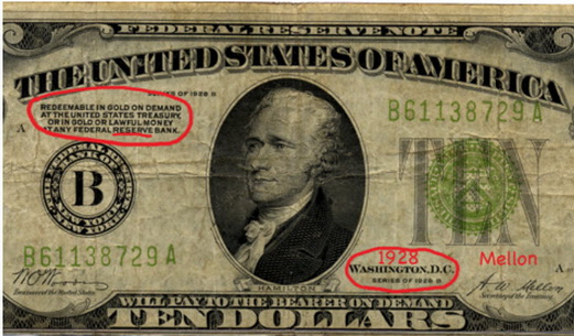 Pođimo redom. Osnivanjem Federalnih rezervi 1913., koji je odobrio američki Kongres stvoren je formalno veliki federalni depo zlata. Ideju da se osnuje ovako centralozovan državni depo (u smislu institucije, a ne fizički) pokrenuo je najmanje jedan privatni kartel međunarodnih bankara sa namerom da formalno zakonom dobije eksluzivno pravo da se na osnovu deponovanog zlata bavi emitovanjem novca, tj. izdavanjem papirnih priznanica kojima se može obavljati trgovina bez podizanja zlata. Do tada su to mogli da rade svi. Svako je mogao da primi na čuvanje zlato građana i da im po tom osnovu izda priznanicu (garanciju) sa kojom su mogli da se služe kao novcem. Kada je deponent želeo nazad svoje zlato, doneo bi priznanicu i zlato bi mu bilu vraćeno. Platio bi samo uslugu čuvanja.