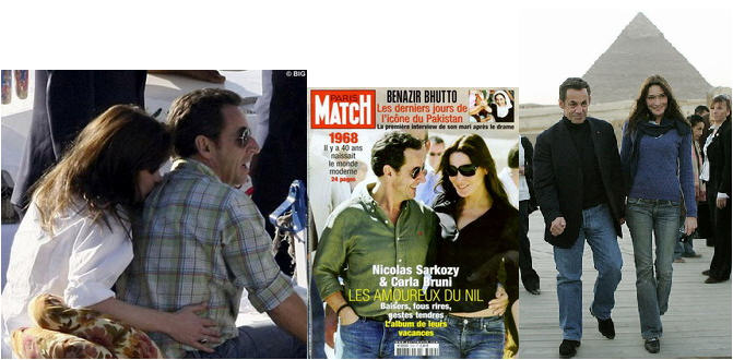 Nekoliko dana kasnije, njihova veza je postala zvanična i mediji su preplavljeni pričom o njima i njihovim zajedničkim slikama iz privatnog života. Tako su ponovo u drugi plan stavljene političke kritike na račun Sarkozija. Nekoliko nedelja kasnije dolazi i do njihovog venčanja. Ovog puta kumovi su Matilda Agostineli (Robertova žena) i Nikolas Bazir direktor kabineta Eduarda Baladira, koji je postao pomoćnik rukovodioca Rotšild banke.