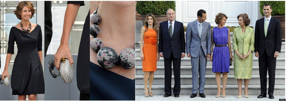 Esma al Asad voli evropski modni glamur, a njene gole ruke nisu primerene islamu. Esma tako i ne skriva da ona tom arapskom islamskom svetu i ne pripada, već je u službi evropske aristkratije. Desno, sa španskom kraljevskom porodicom.