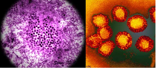 1. Mnogi fotosi virusa su u boji. To je samo dokaz da su oni naknadno doterani (dizajnirani) jer snimak sa elektronskog mikroskopa je uvek u crno- beloj tehnici. Pored toga to je uvek u pitanju mrtav virus odnosno ćelija u kojoj se on nalazi. |